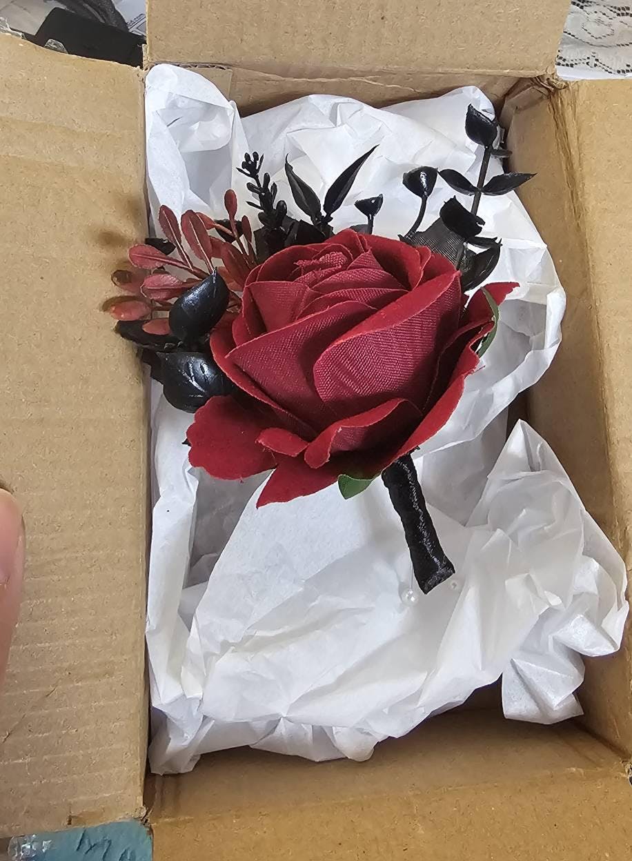 Black Burgundy Boutonniere Wedding Groom Black Boutonniere Gothic Burgundy Groomsmen Boutonnière Black Prom Wine Red Artificial Flowers