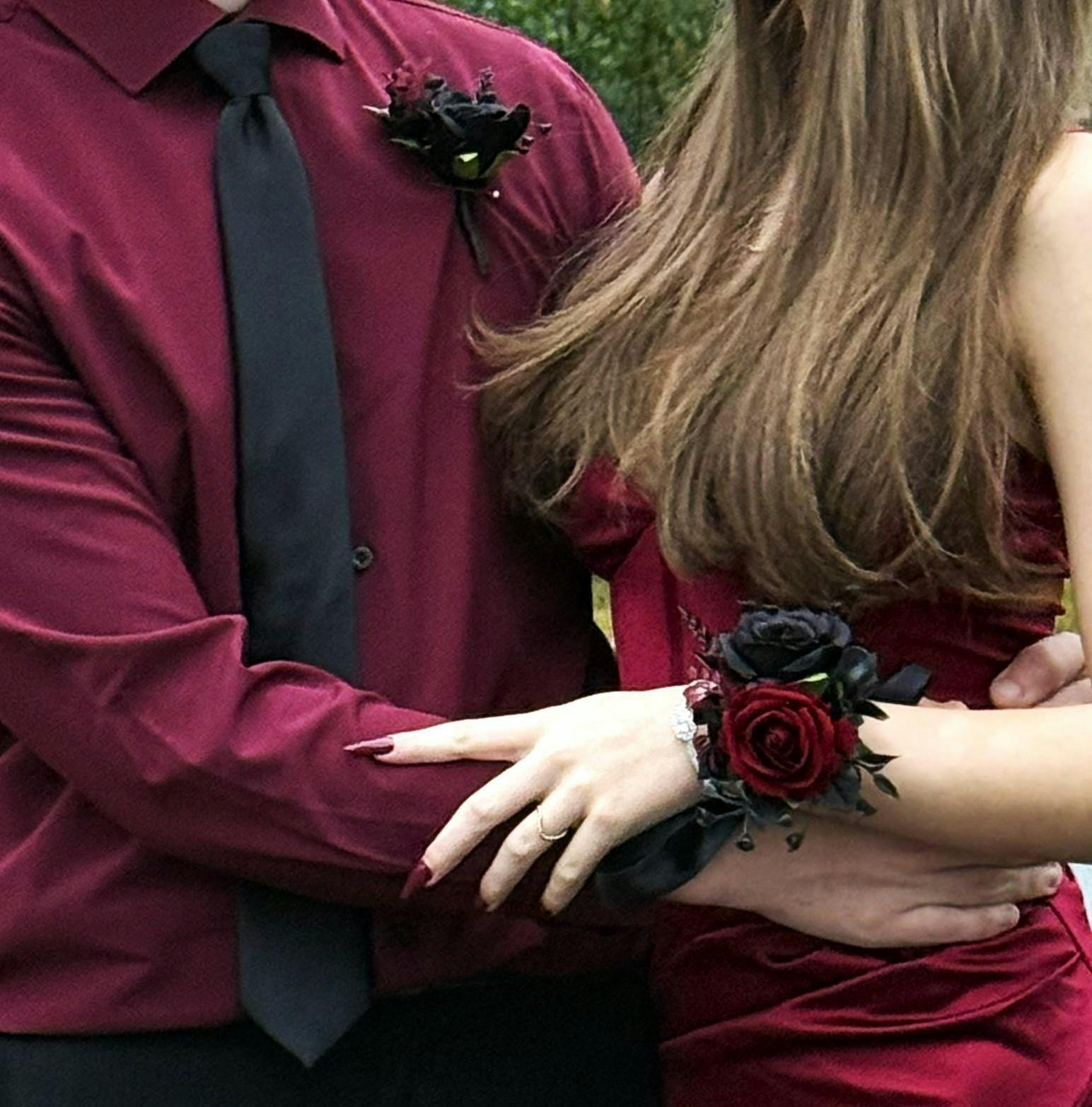 Black Burgundy Corsage Wedding Gothic Wrist Corsage Bridesmaids Black Corsage Mom Black Burgundy Accessories Artificial Flower