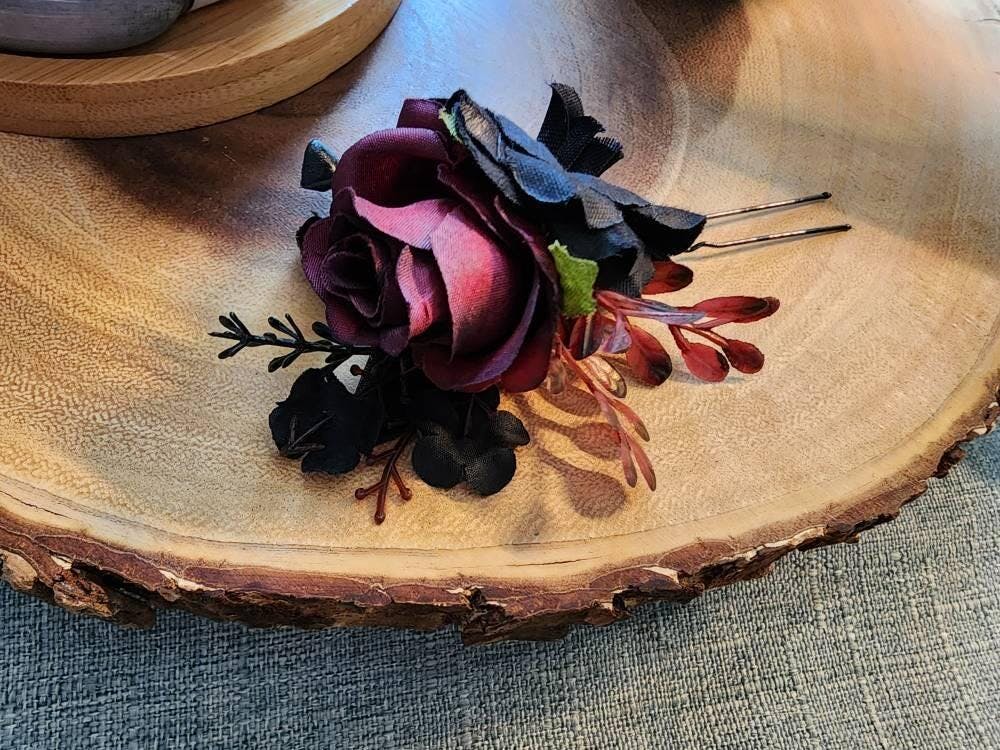 Black Hair Comb Wedding Burgundy Flower Girl Hairpiece Gothic Floral Hair Comb Decorative Black Accessories Dusty Rose Artificial Flower