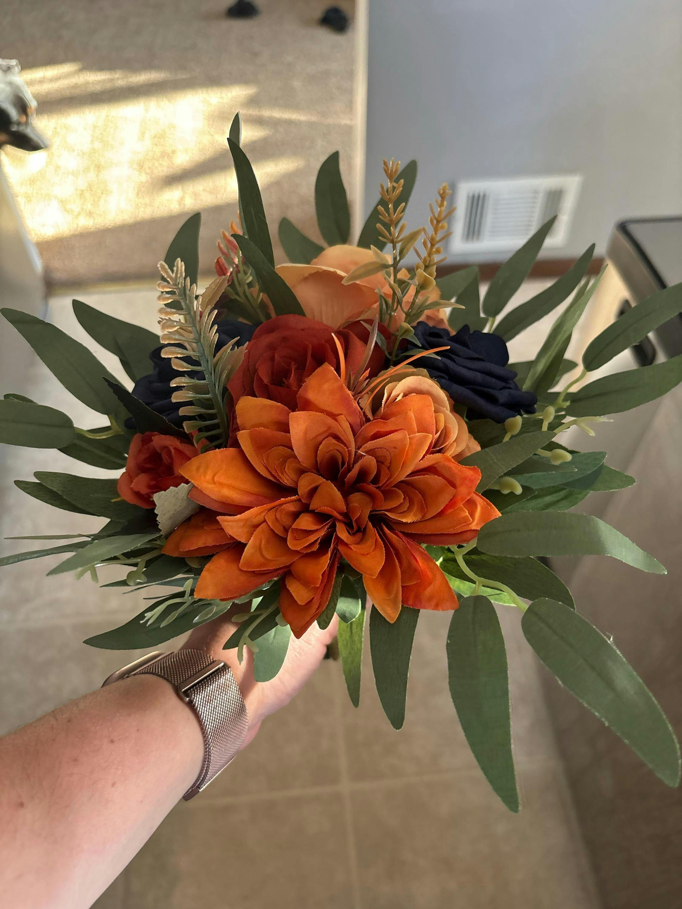 Navy Blue Orange Bouquet Wedding Navy Blue Rust Bouquet Bridesmaids Terracotta Dark Blue Bouquet Burnt Orange Navy Blue Artificial Flowers