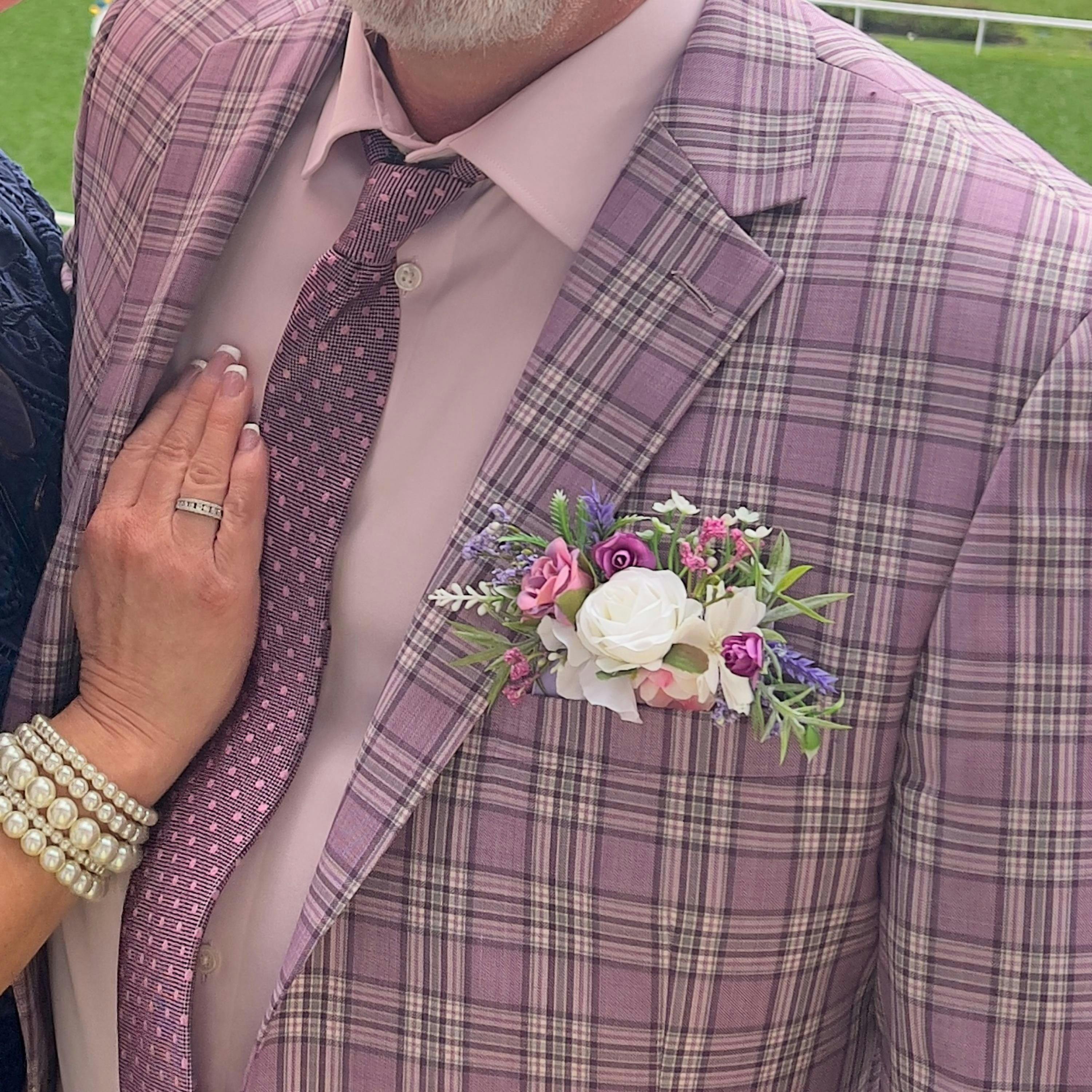 Purple Pocket Boutonniere Wedding Pink Groom White Lilac Boutonnières Groomsmen Square Boutonnière Pocket Lavender Artificial Flower Mauve