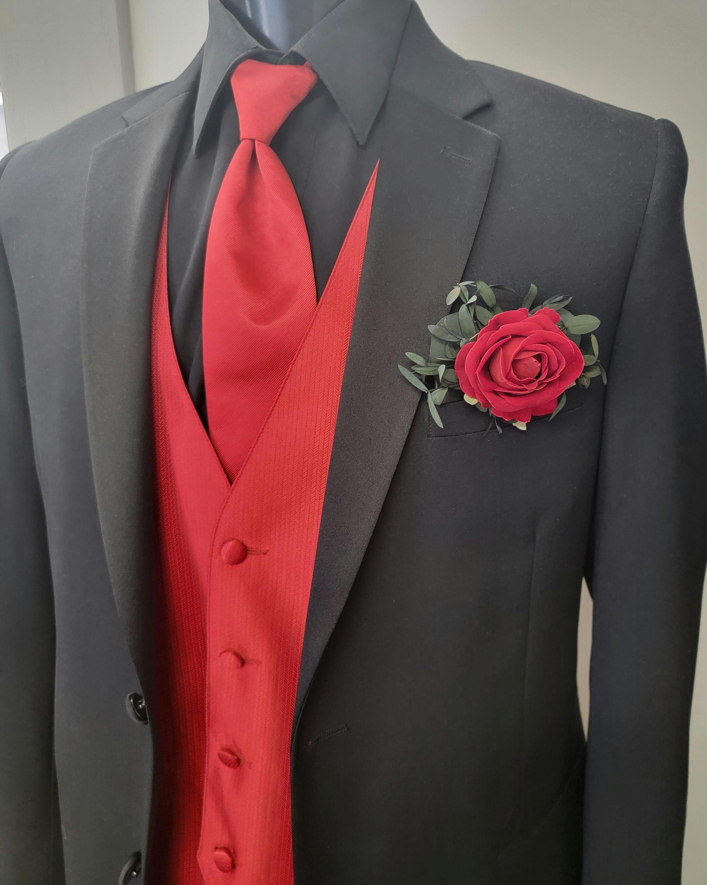 Red Pocket Boutonniere Wedding Christmas Pocket Boutonnières Red Groomsmen Square Boutonnière Pocket Red Winter Baby Breath Eucalyptus