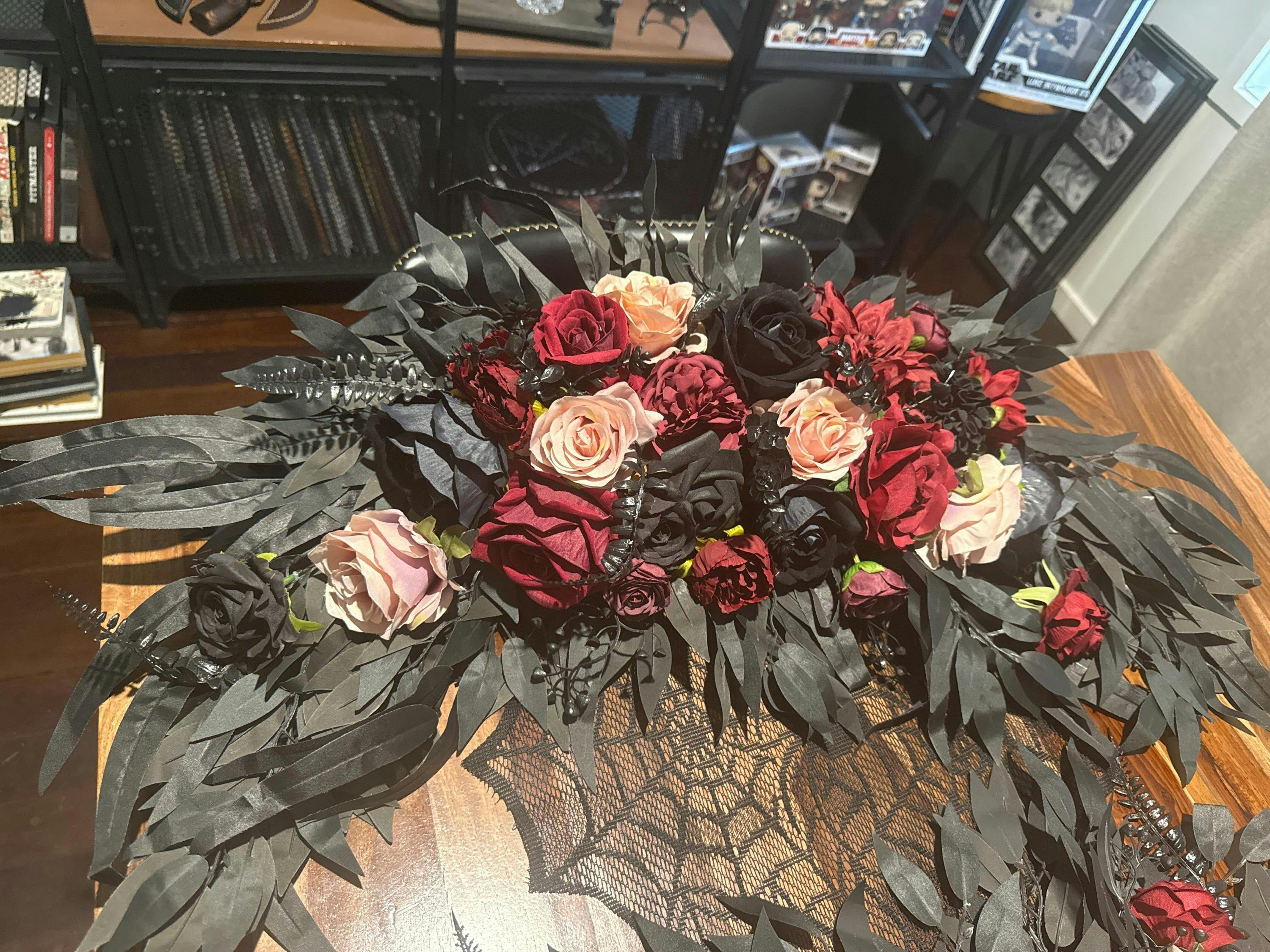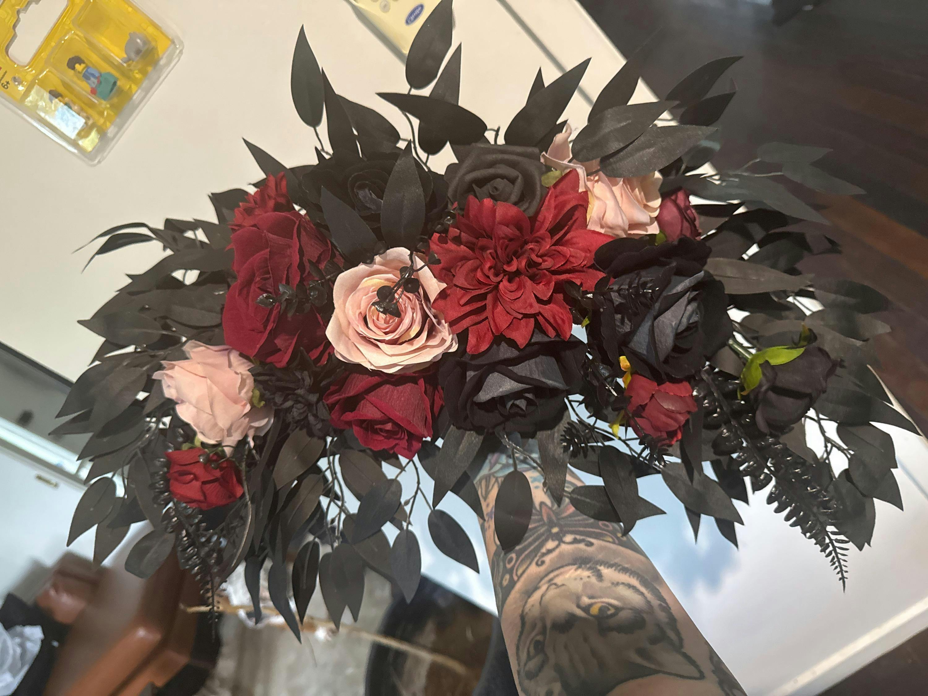 Wedding Bouquet Black Burgundy Gothic Bridal Dusty Rose Halloween Bouquet Black Bridesmaids Bouquet Black Burgundy Artificial Flower