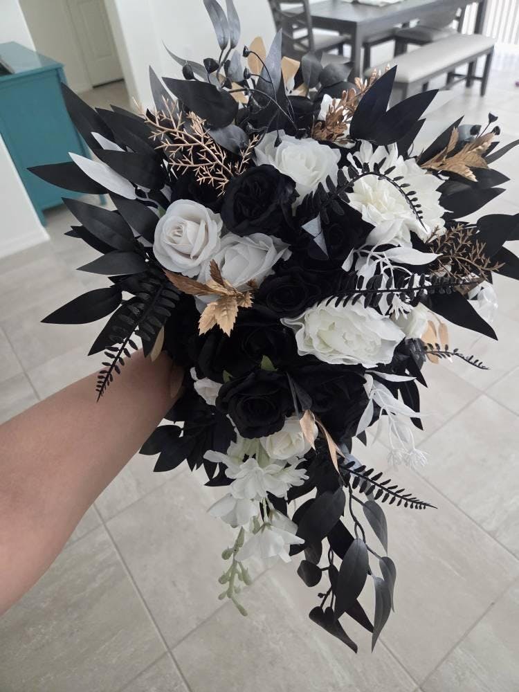 Wedding Cascade Black Bouquet Burgundy Gothic Bridal Halloween Cascading Bouquet Black Decor Burgundy Artificial Flower Bridesmaids Black