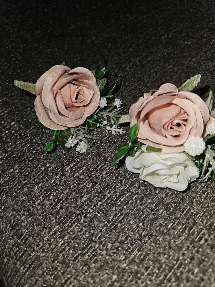 Wedding Corsage Pink Wedding Wrist Corsage White Bridesmaids Decor Corsage Ivory Corsage White Accessories Dusty Rose Artificial Flowers