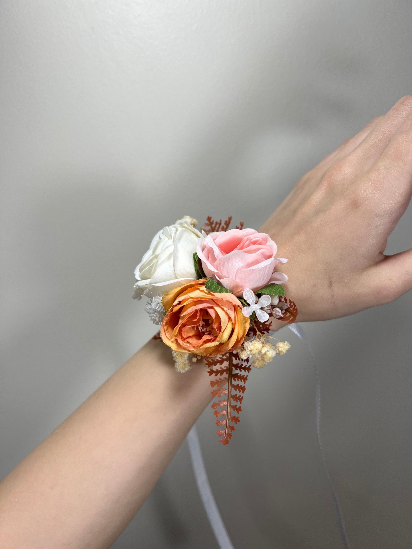 Wedding Corsage White Terracotta Pink Wedding Wrist White Corsage Bridesmaids Decor Corsage Bridal Ivory Accessories Artificial Flowers