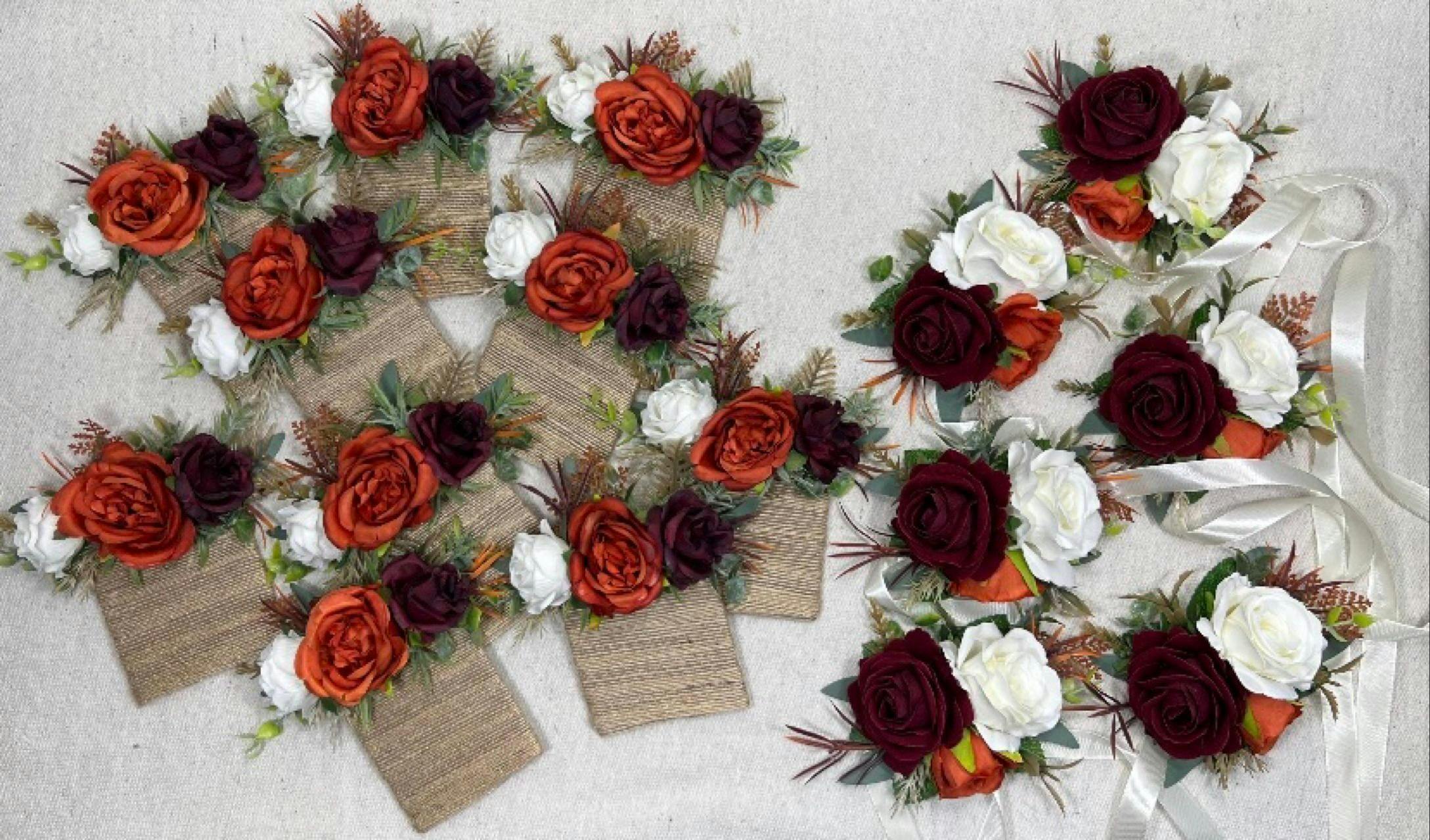 Wedding Pocket Boutonniere Terracotta Groom Boutonnière Square Groomsmen Rust White Burnt Orange Ivory Boutonniere Red Artificial Flowers